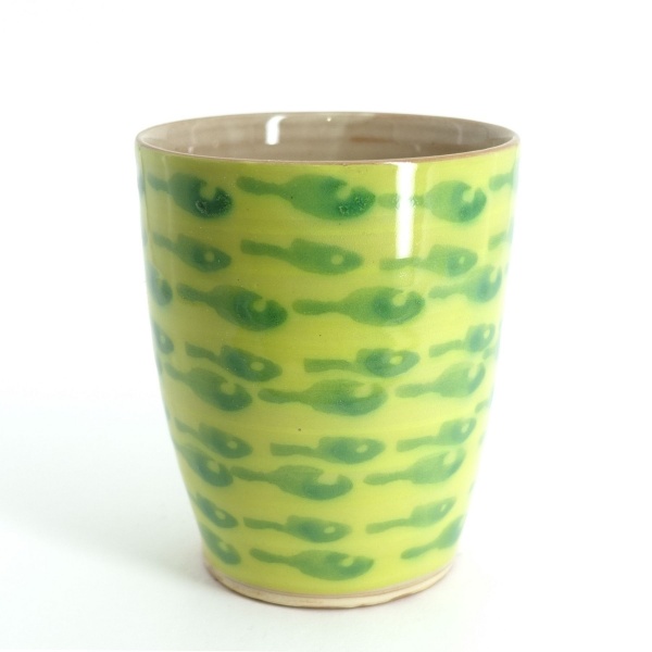 Becher Neon-Gelb, grüne Fische