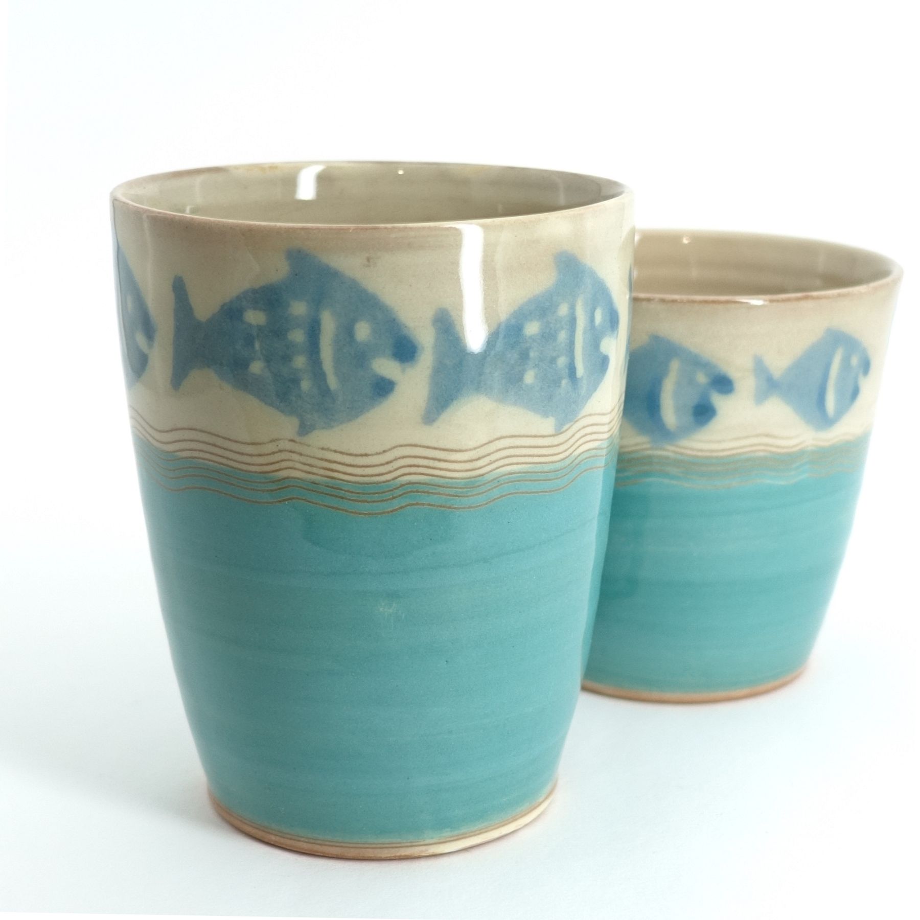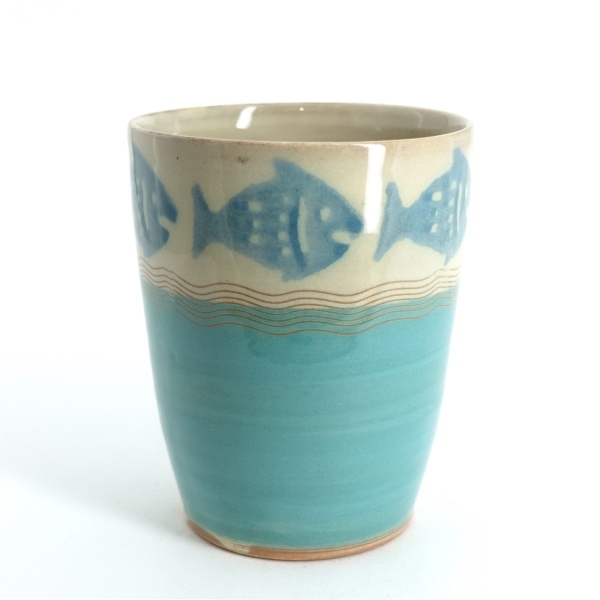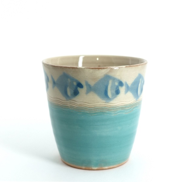 Becher Mint, blauer Fischrand