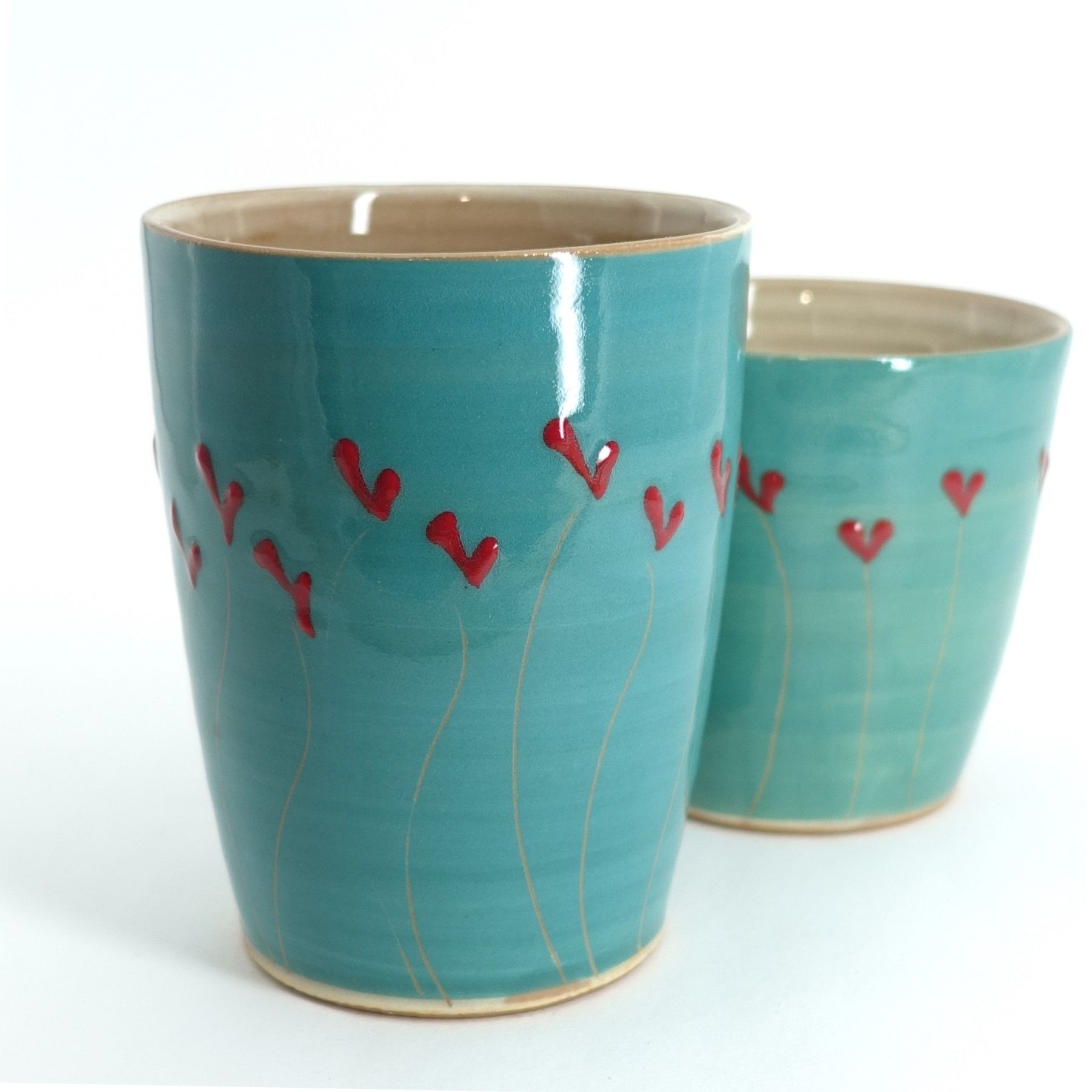 Becher Mint, rote Herzen