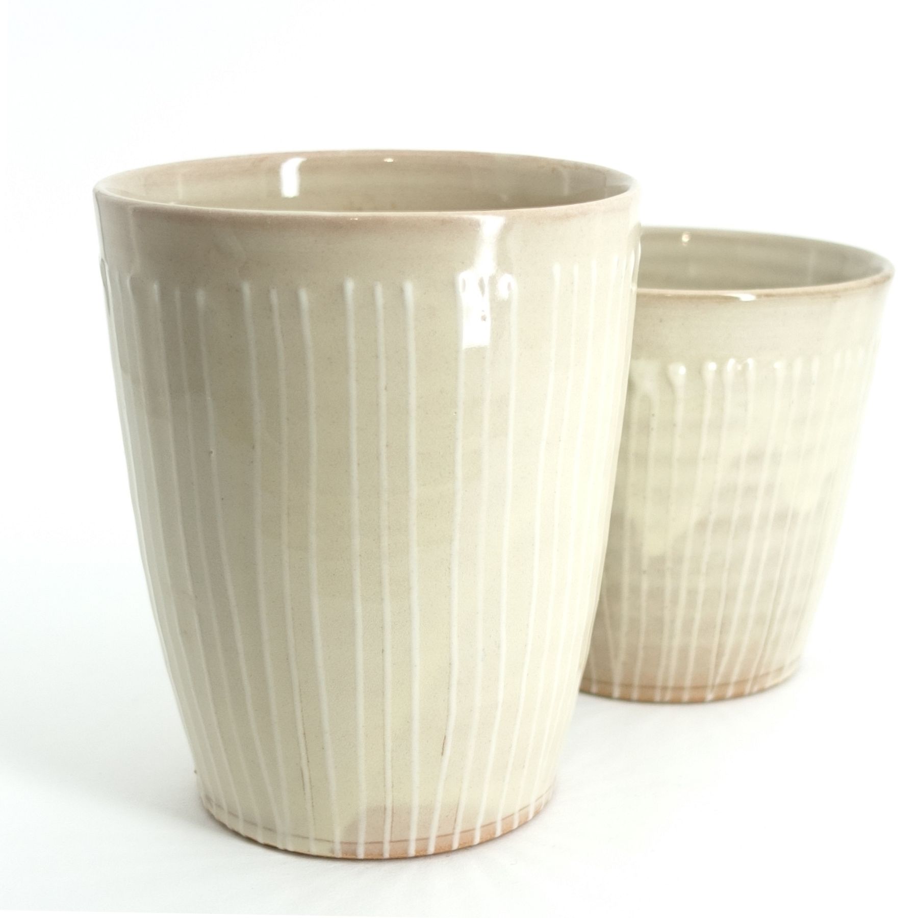 Becher Natur, weiße Streifen