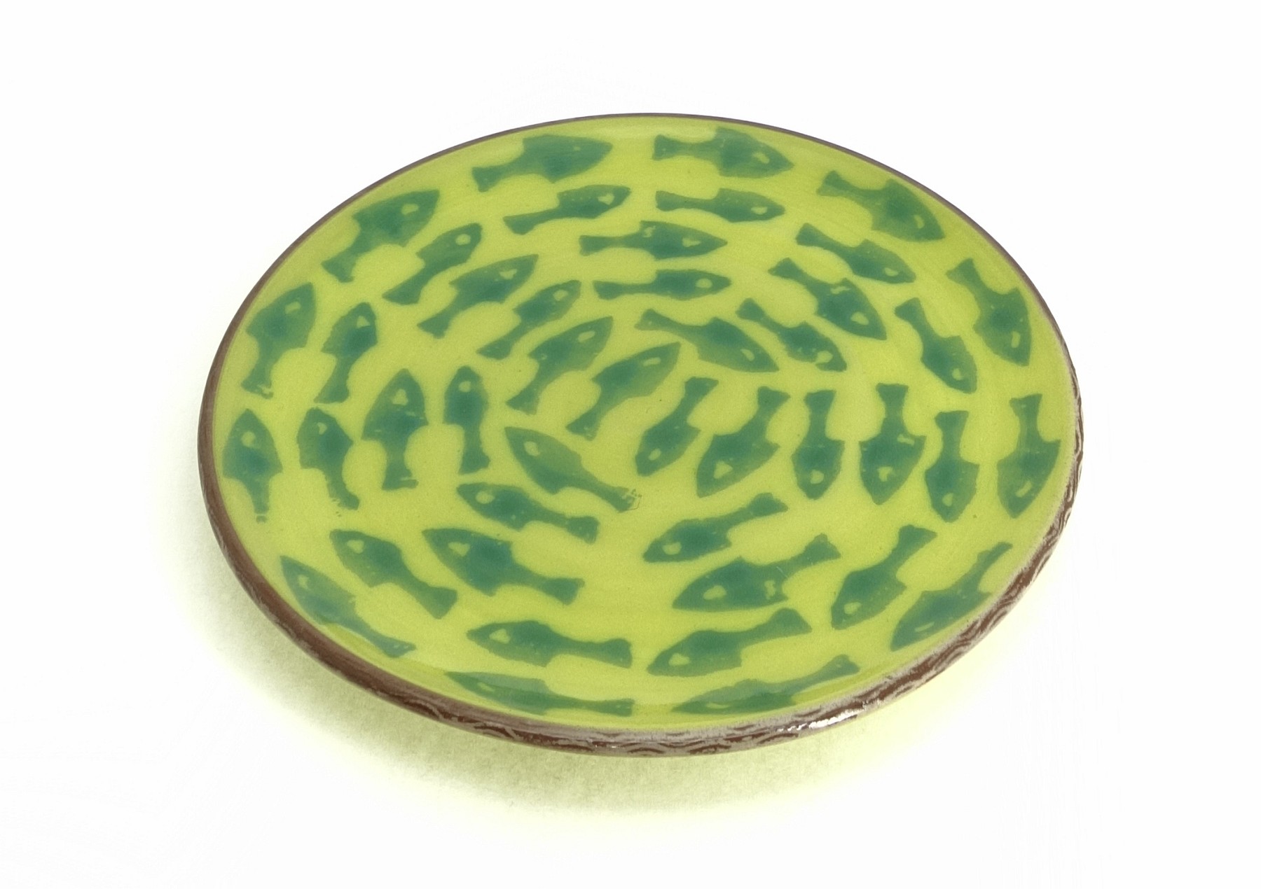 Dessert-/Frühstücksteller Neon-Gelb, grüne Fische Ø ca. 20cm