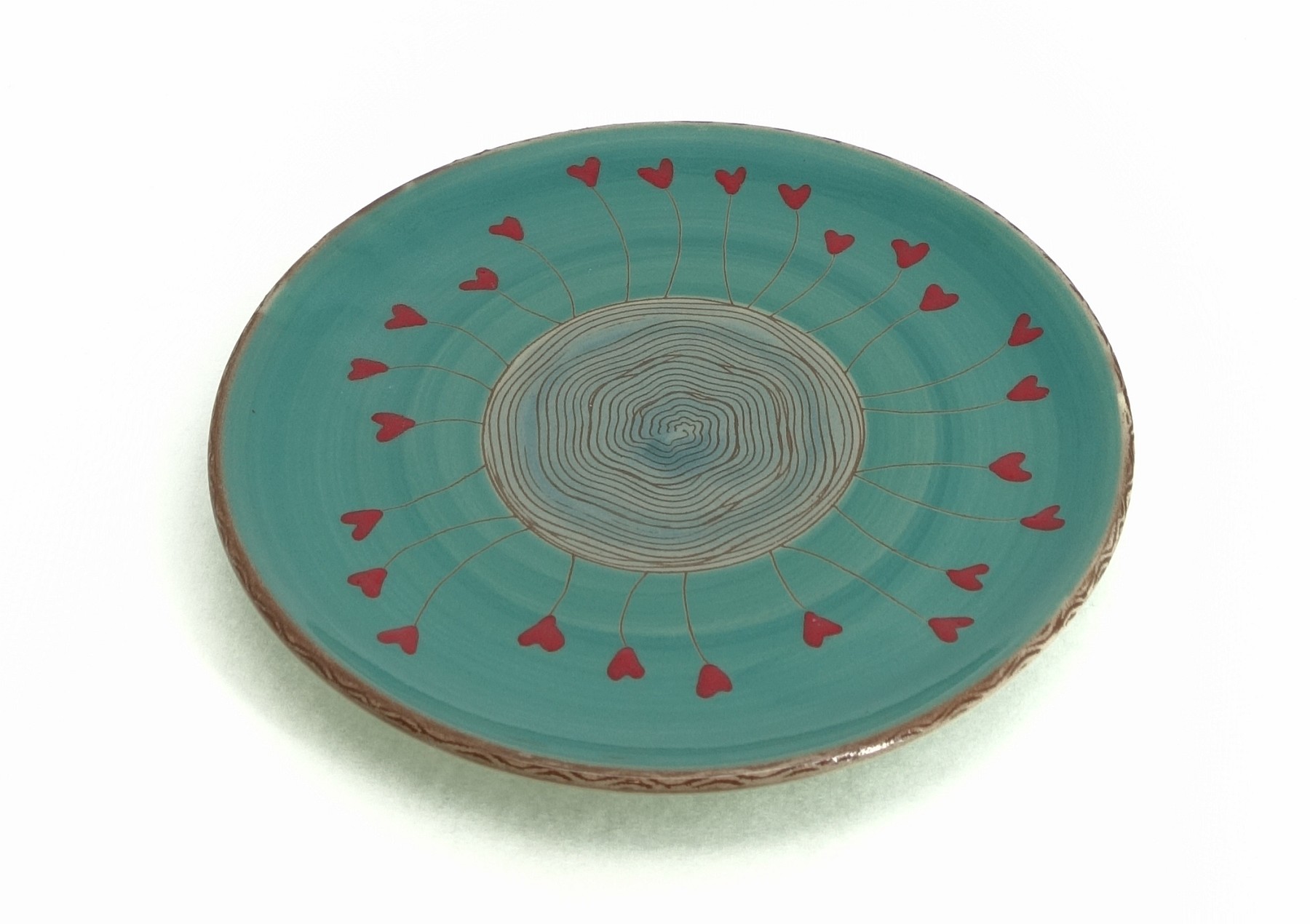 Dessert-/Frühstücksteller Mint, rote Herzen Ø ca. 20cm