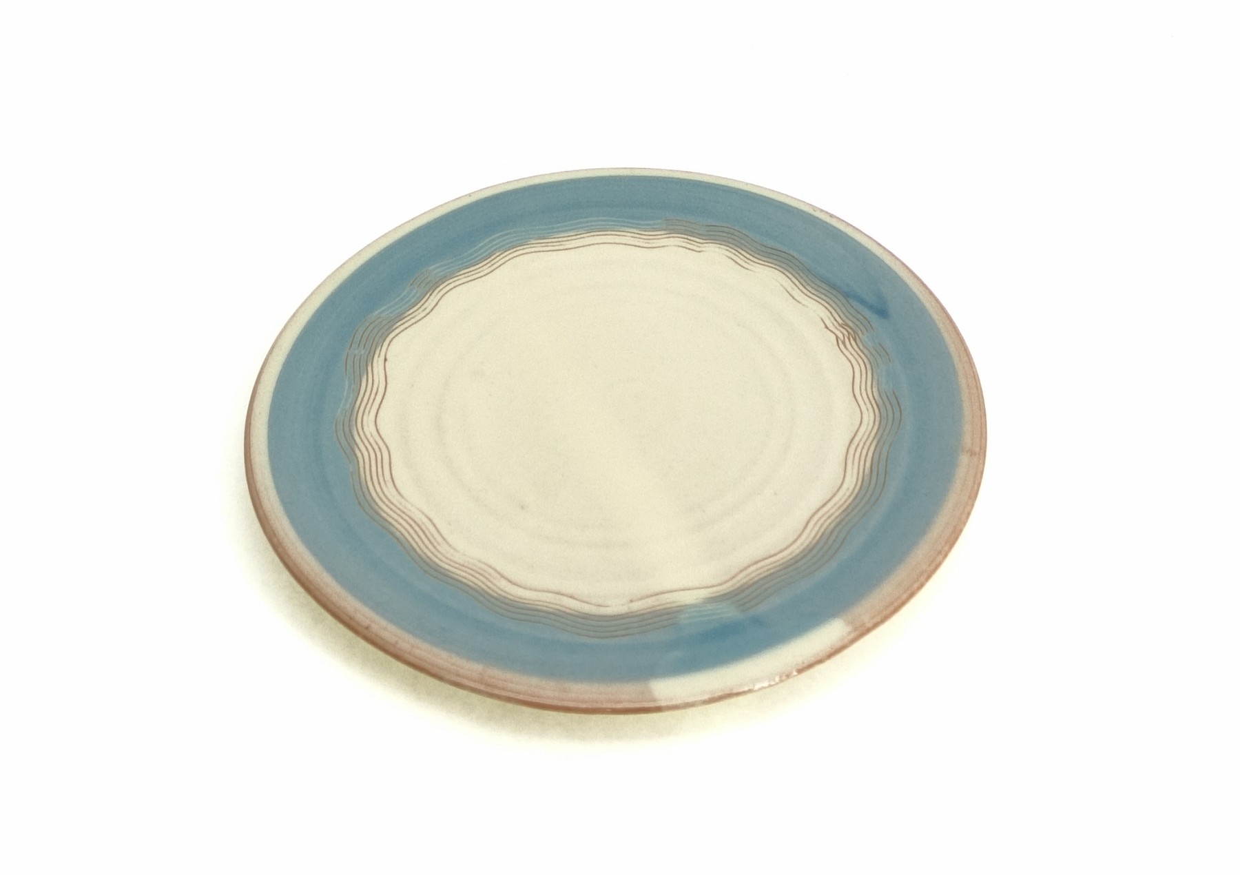 Kleiner Dessertteller/großer Unterteller Natur, blauer Rand