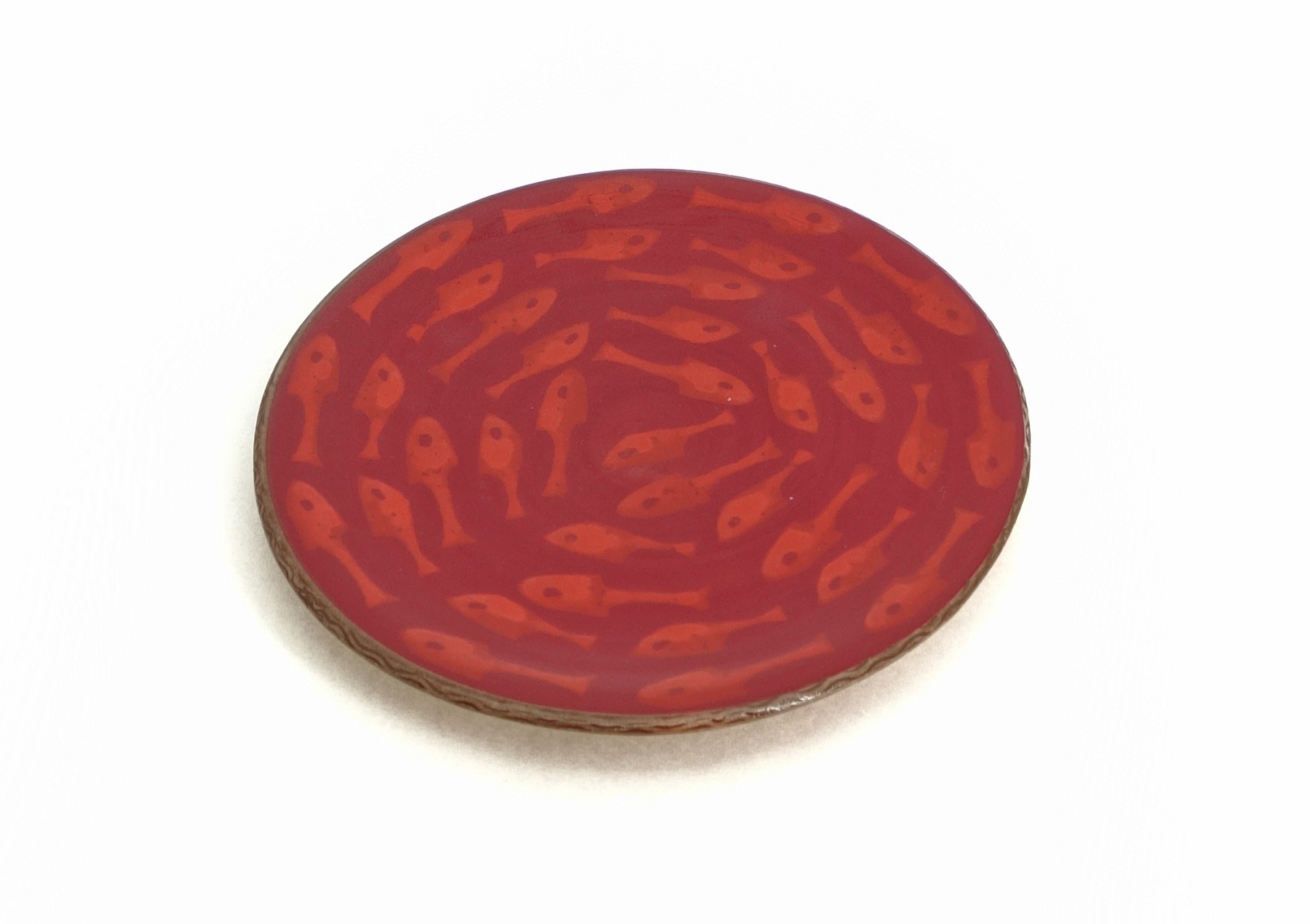 Kleiner Dessertteller/großer Unterteller Rot, orange Fische Ø ca. 17cm