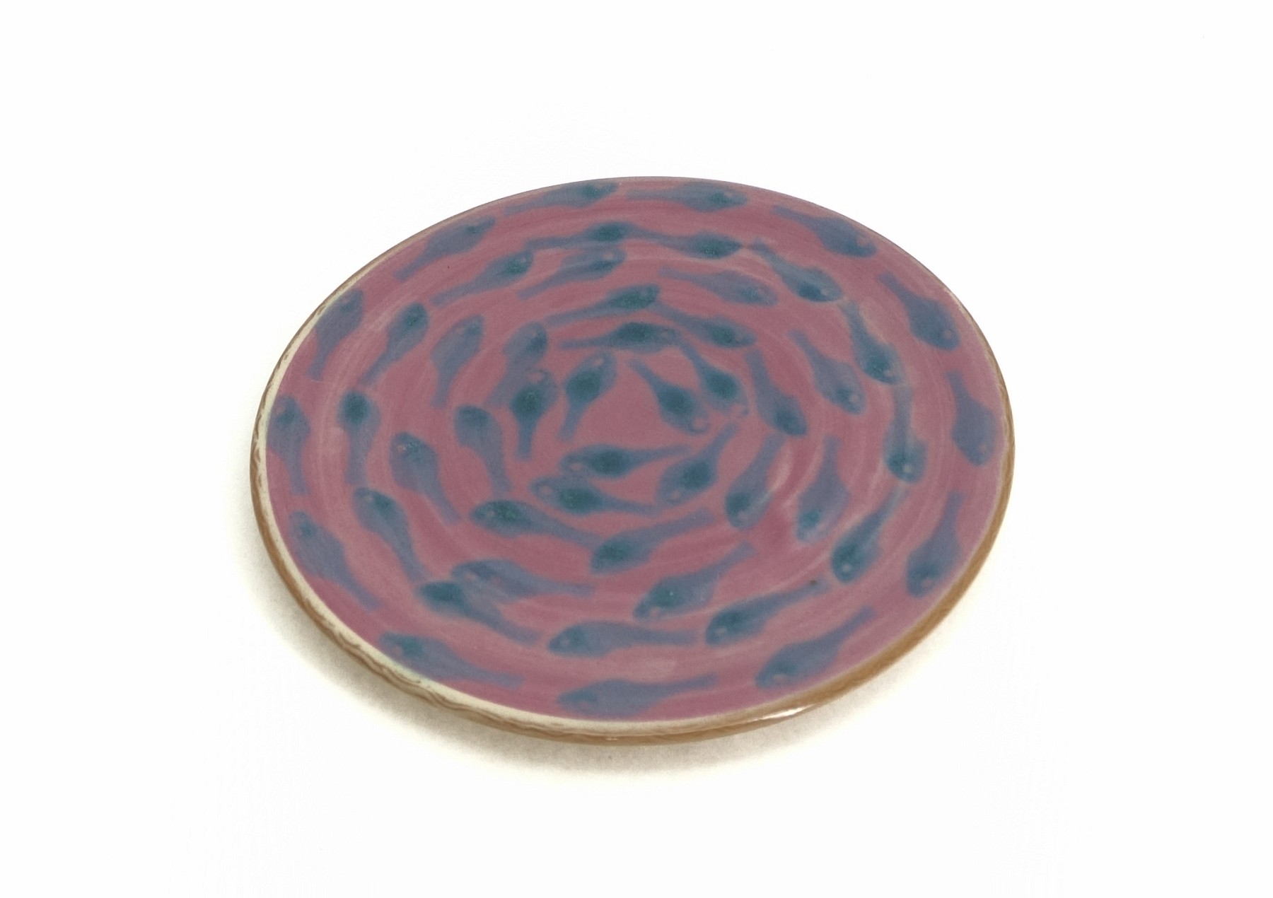 Kleiner Dessertteller/großer Unterteller Rosa, blaue Fische Ø ca. 17cm