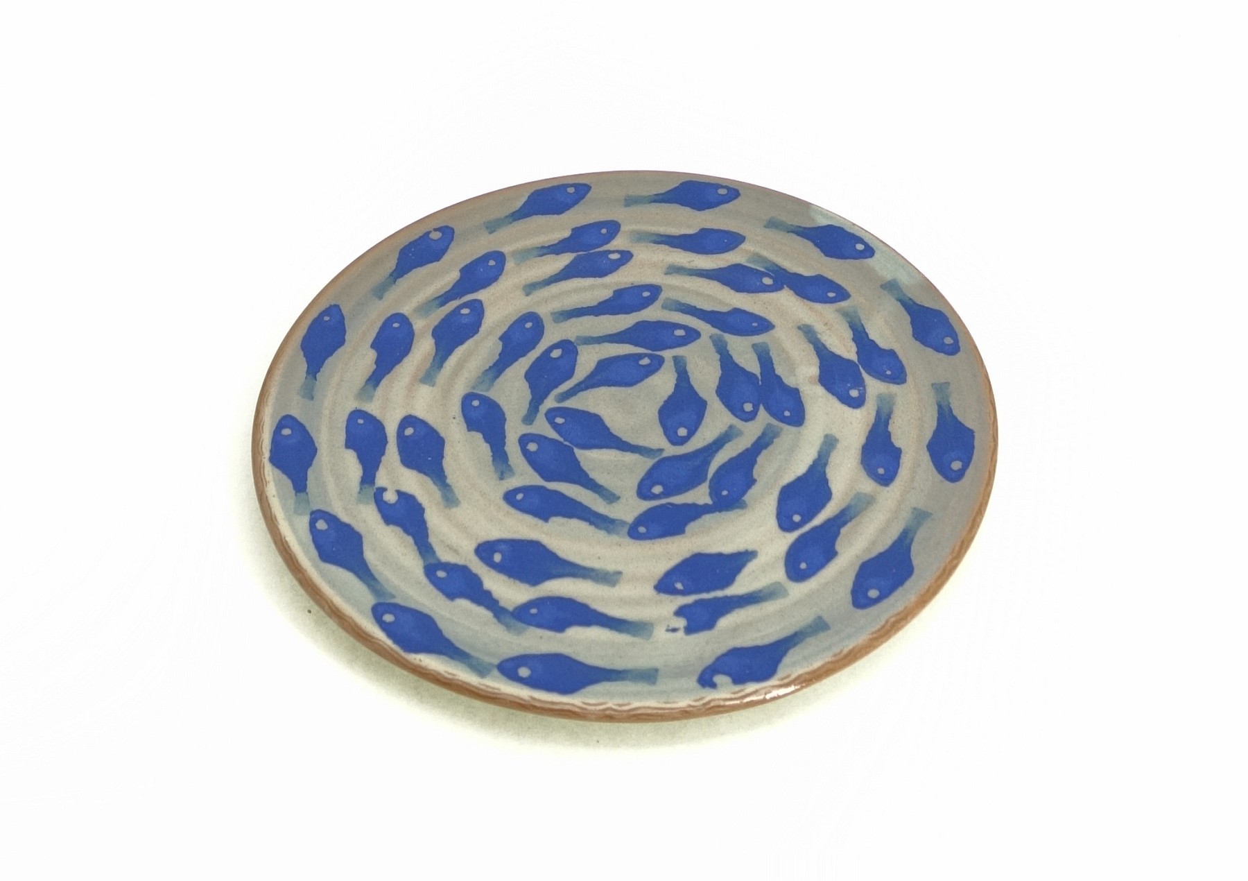 Kleiner Dessertteller/großer Unterteller Pastellblau, blaue Fische Ø ca. 17cm