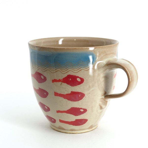 Glockentasse blauer Rand, rote Fische ~ 280ml