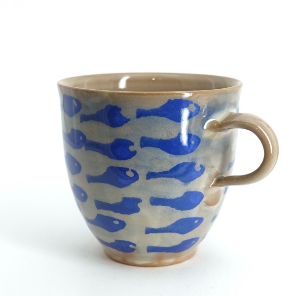 Glockentasse Pastellblau, blaue Fische ~ 280ml