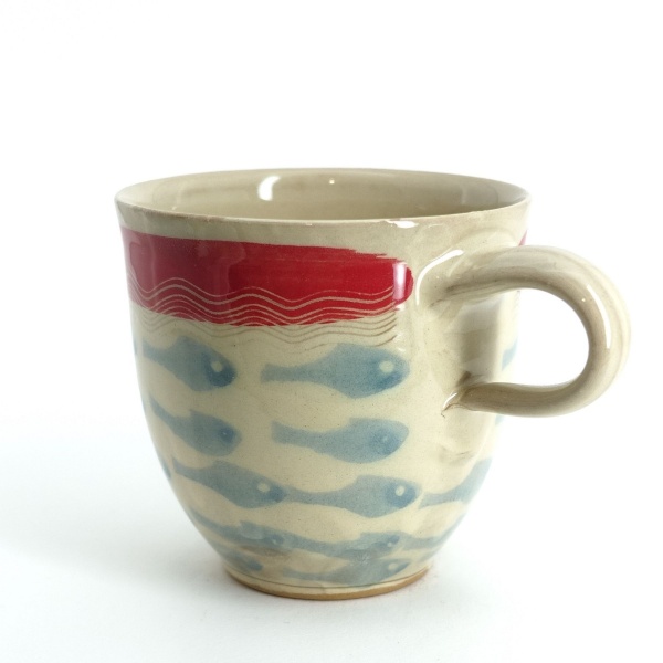 Glockentasse roter Rand, blaue Fische ~ 280ml