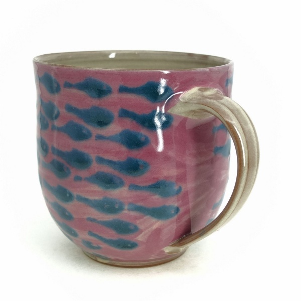 Jumbotasse Rosa, blaue Fische ca.700ml