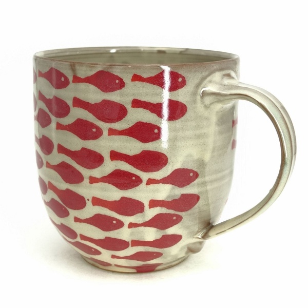 Jumbotasse Natur, rot-orange Fische ca.700ml