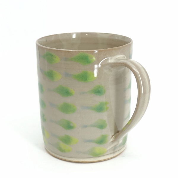 Kaffeehaferl Natur, gelb-grüne Fische ca. 400ml