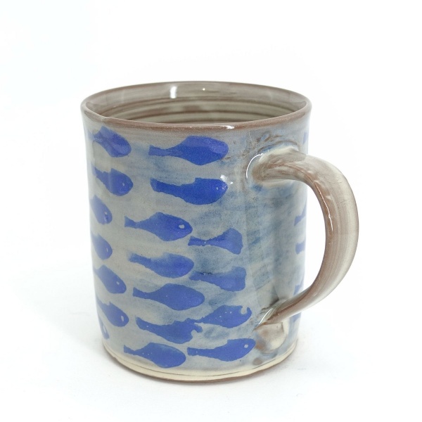 Kaffeehaferl Pastellblau, blaue Fische ca. 400ml