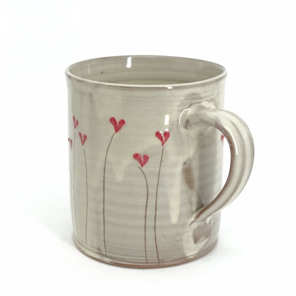 Kaffeehaferl Natur, rote Herzen ca. 400ml