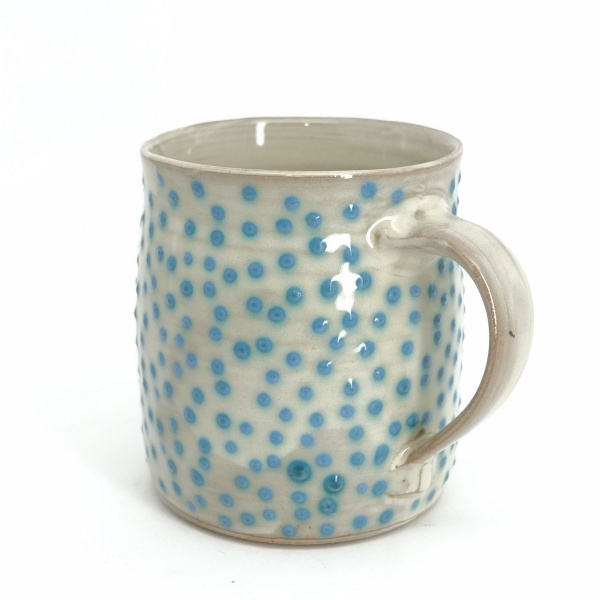 Kaffeehaferl Natur, blaue Punkte ca. 400ml