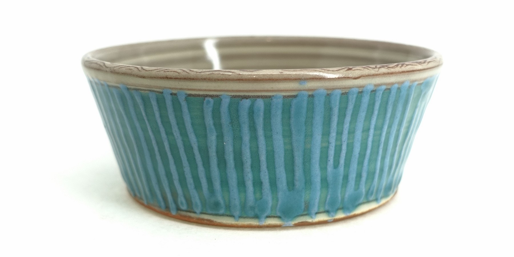 Mini-Weidling Mint, blaue Streifen Ø ca.10cm, H ca.4cm