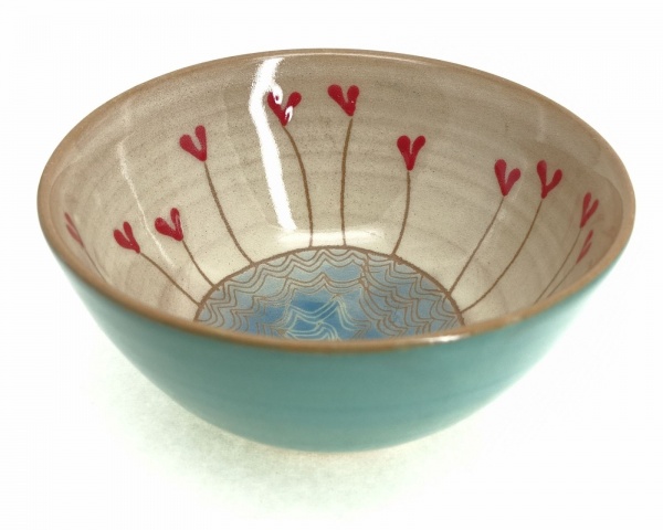 Mobile Preview: Schälchen Mint, rote Herzen innen Ø ca.10,5, H 5cm