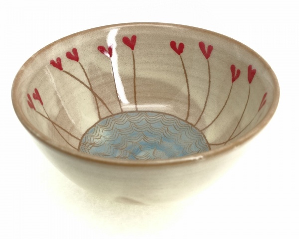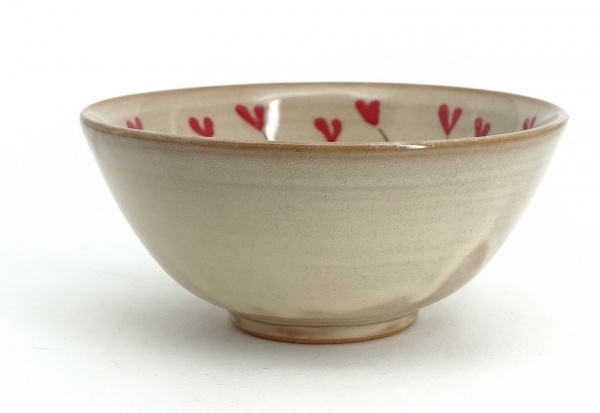 Preview: Schälchen Natur, rote Herzen innen Ø ca.10,5, H 5cm