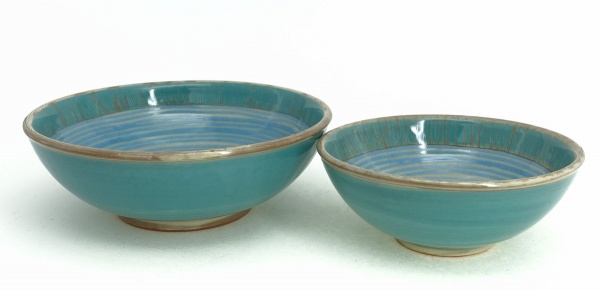 Suppenschalen Mint, blaue Spiralen auf Natur
