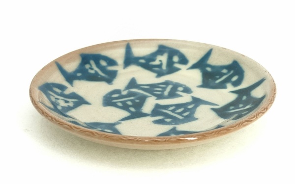 Der rote Ton wird in eine weiß-beige Engobe (dünner Tonschlicker) getaucht, diese dient als Malhintergrund. Danach erfolgt die Bemalung mit farbiger Engobe. Beides kann dadurch ungleichmäßig sein. Dadurch entsteht der charakteristisch lebendige Ausdruck unserer Keramik.