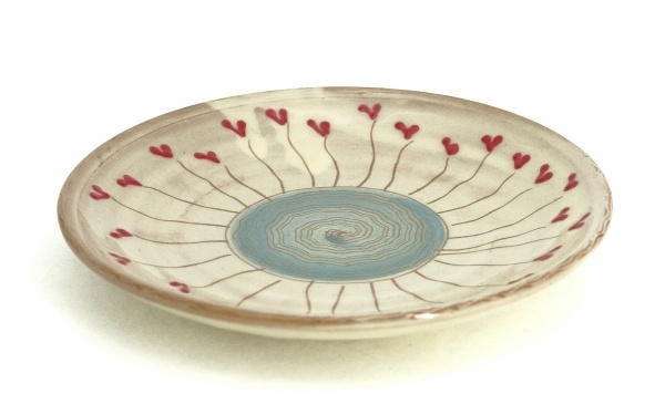 Unterteller Natur, rote Herzen Ø ca. 14cm