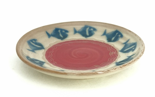 Unterteller Rot, blauer Fischrand Ø ca. 14cm