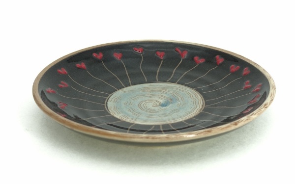 Unterteller Schwarz, rote Herzen Ø ca. 14cm