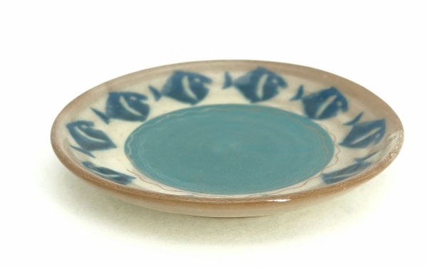 Unterteller Mint, blauer Fischrand Ø ca. 14cm