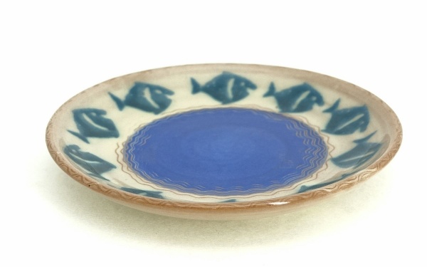Unterteller Blau, blauer Fischrand Ø ca. 14cm