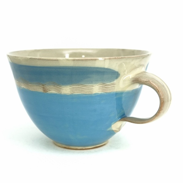Weite Jumbotasse Hellblau, blauer Rand ca.550ml