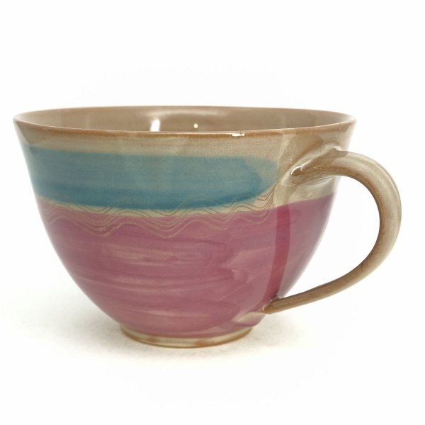 Weite Jumbotasse Rosa, blauer Rand ca.550ml