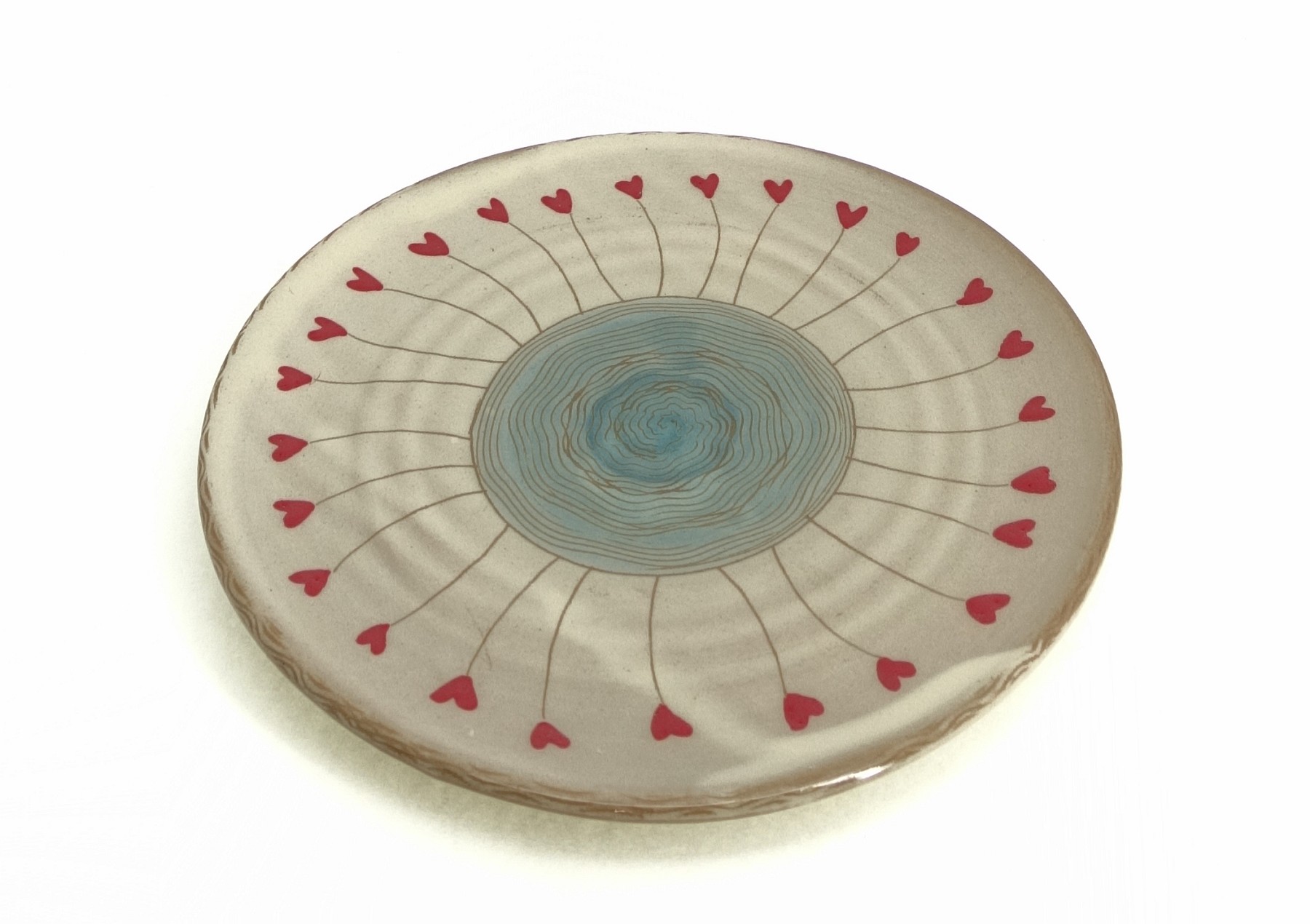 Dessert/Breakfast Plate Natural, Red Hearts Ø ca. 20cm